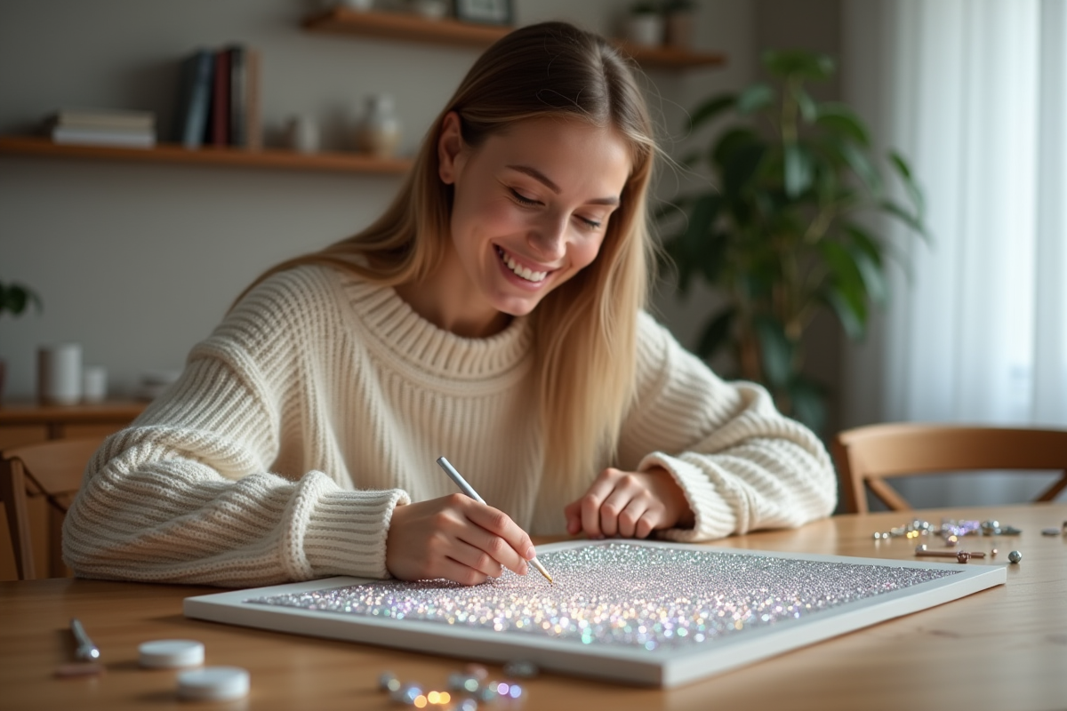 Si le diamond painting s’impose aujourd’hui, ce n’est pas seulement pour sa simplicité d’accès. Cette activité anti-stress se distingue par ses effets concrets sur le moral. En répétant le geste, en se concentrant sur chaque strass posé, on s’accorde une pause bien méritée. L’attention requise éloigne les pensées parasites, invite au lâcher-prise et fait disparaître, le temps d’une session, la pression du quotidien et l’agitation numérique. La satisfaction créative ne tarde pas : chaque zone terminée apporte un petit shoot de fierté, un encouragement à continuer. Nombreuses sont celles et ceux pour qui le diamond painting art devient un véritable rituel apaisant. La précision du geste sollicite la motricité fine, l’œil s’exerce à repérer nuances et détails. Plusieurs études sur les loisirs créatifs relaxants soulignent ce bénéfice : se recentrer, se reconnecter à soi-même via l’action répétée et le plaisir du résultat.