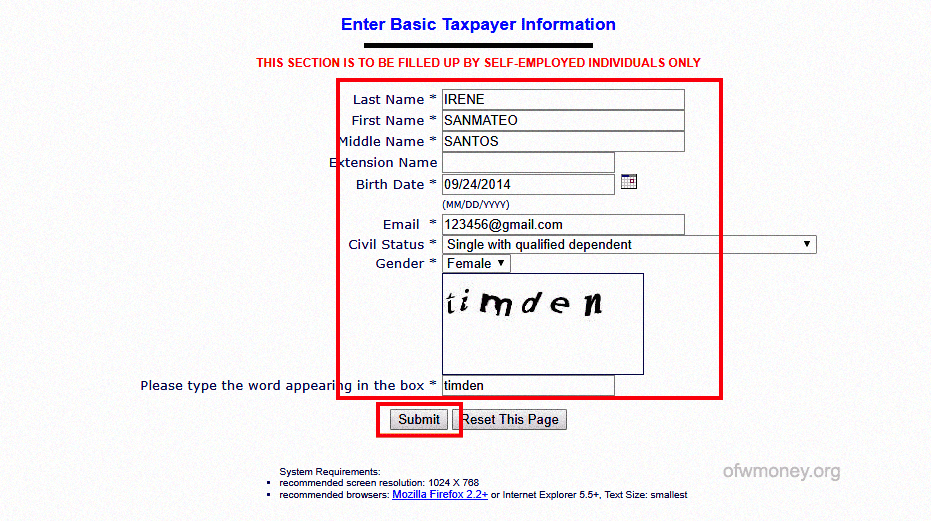 Note : Le BIR vérifiera d’abord dans sa base de données si vous n’avez pas déjà reçu un numéro d’identification d’identification (TIN) antérieur et actuel. Donc, avant de faire une demande de NIC, assurez-vous que c’est votre première fois et que vous n’avez pas de NIC antérieur. Rappelons que la possession de plus d’un numéro d’identification de contribuable est passible de sanctions pénales en vertu du Code national du revenu interne de 1997, tel que modifié..